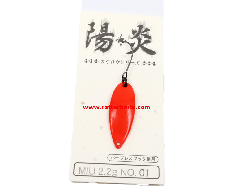 The Trout Spoons Forest Kagerou from the Japanese company FOREST are some of the best in their class. These vibrating rocking lures are filled with precision and attention to detail, making them excellent for fishing trout, salmon, bass, maple, and pike. The impressive range of colors, sizes, and weights offered by FOREST allow anglers to adapt to any specific fishing conditions. The expert's micro spoons can help in even the most difficult situations and can entice even the most finicky predators. The MIU KAGEROU, which translates to "hot mist," are illuminated micro spoons that feature a strong concave body in the middle, which only requires a slight shake to mimic the appeal of a dying Ephemera. The shooting stagger arranged like a flower displays the color emitting KAGEROU in daylight and the dark. This model of FOREST is even more effective in UV light, making it a very popular choice among anglers. Suitable for tournament fishing, these spoons come in various colors and weights, with the Forest Pal 3.8g spoons being particularly popular among trout anglers in Japan. These spoons make a steady wobbling action without darting or irregular actions and allow the angler to control the swimming range by changing retrieve speed and weight without changing actions. It comes with a fine wire barbless single hook.