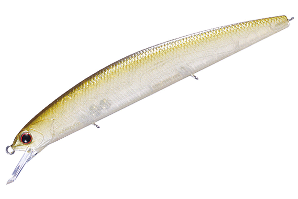 Weighing 16g (3/5oz.) and measuring 113mm (4-1/3in.), the OSP Varuna 110 SP offers an ideal middle-size jerkbait that can be used in different fishing scenarios. Its full-flat body design and three tungsten weights enable accurate casts and stable flying posture, producing a unique sound and low center of gravity to attract fish. With a simple retrieve, it dives to 1.2-1.8m and up to 2.8m with jerking. Its honeycomb super HP body (Pat.) offers lightness and strength to produce bites. You can use it for both small and big bass -- its versatility makes it a go-to weapon for any situation. Boasting high performance and effectiveness, the Varuna 110 SP increases your chances of a successful catch.