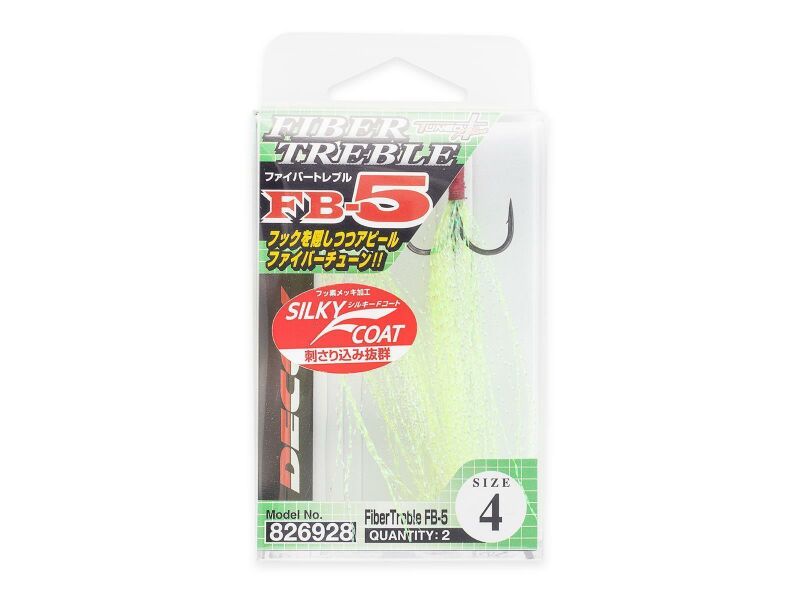 The DECOY Fiber Treble FB-5 are trebles with a Fiberflash skirt and are intended as a replacement for the rear treble on hardbaits. The unique construction of these trebles offers superior performance and durability to maximize your catch rate.