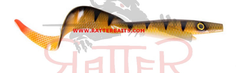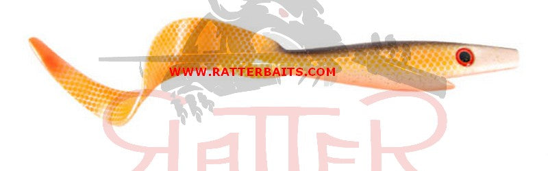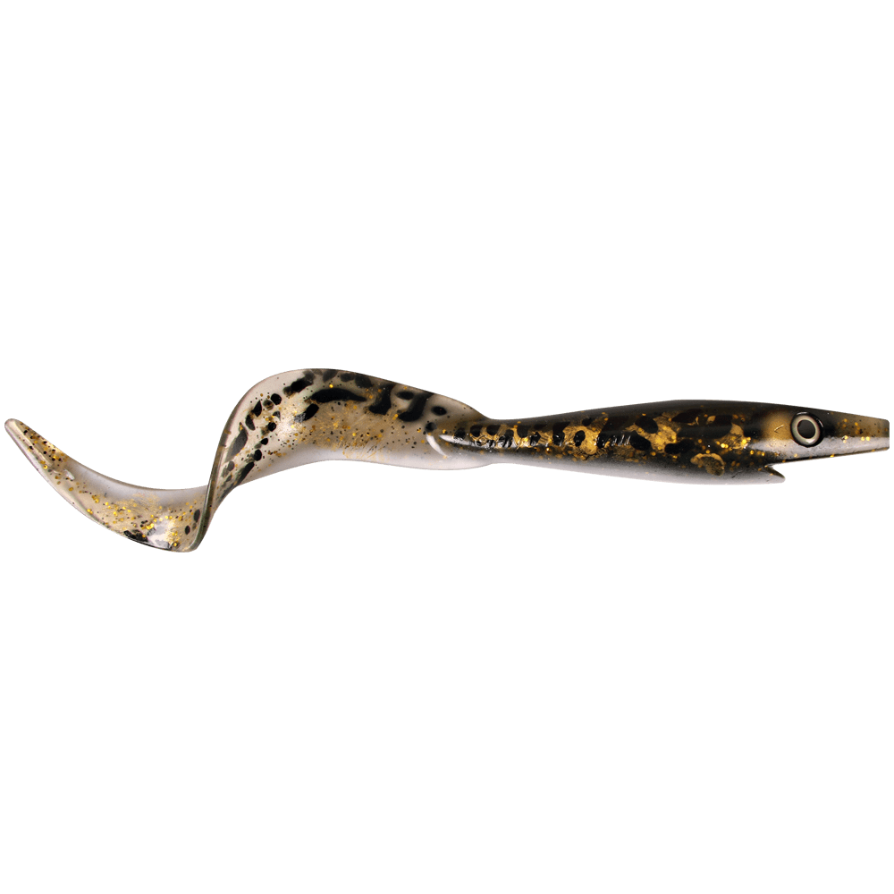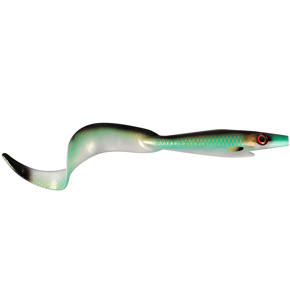 The 40cm (15.75'') Strike Pro Giant Pig Tail is a soft plastic lure based on classic jerk bait. While the head rocks subtly back and forth, the tail oscillates with a slow, enticing action and a built-in rattle chamber produces an audible clicking sound that attracts predators.