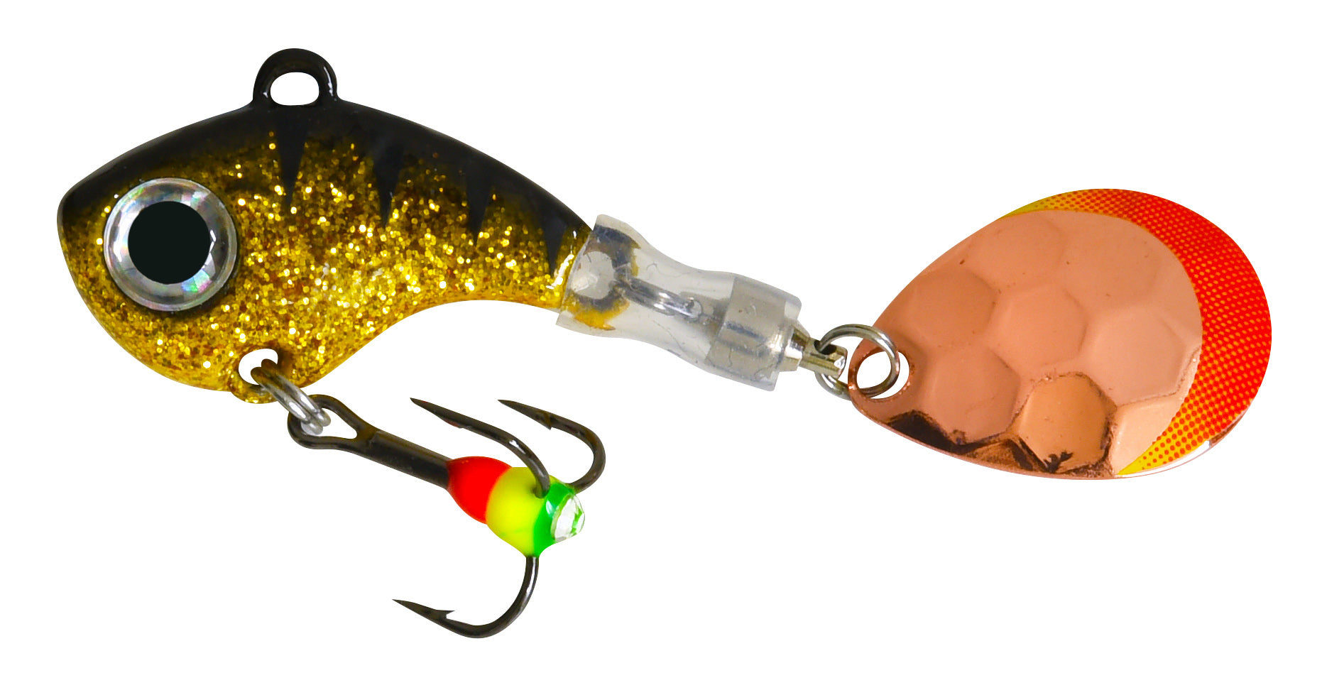 Patriot Twisty Tail spinner imitates a fish's head on the wheel, allowing you to fish with precision. Whether you prefer surface reeling or bouncing along the bottom, Patriot Twisty Tail spinner puts you in control of the pace and rhythm. The lure's spinning cap attracts fish from a distance, making fishing both effortless and enjoyable.