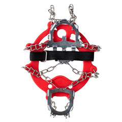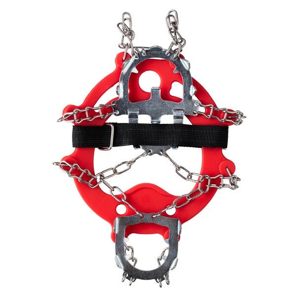 The Rapala Greenland Grippers utilize a combination of thermoplastic rubber, stainless steel crampons, twist chains, and velcro loops for optimal traction on all types of terrain.