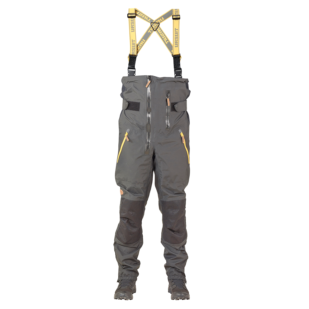 In the Utö set we use a Gore-Tex Pro material for the best performance. Knees and back are reinforced using a Cordura reinforcement. The pants have a waterproof pocket for mobile phone or car keys. The reinforcements on the shoulders are made from a reflective material for more visibility in darker conditions. Utö is equipped with easy adjustable tightening on the sleeves and zipper adjustable endings on the legs. The hood is adjustable to fit perfectly with any head wear. The pants have tightening on the waist for better fitting. The pants have front attached suspenders for easy removing of pants without undressing the jacket. The pants and the jacket both have two splash proof pockets.