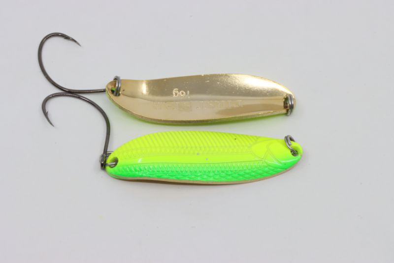 The lure is designed for catching salmon species of fish in strong currents, but it also performs well in waters without a current. Holds the jet perfectly, has a stable game at any speed of wiring. Due to its shape, First Star quickly falls into the fishing horizon and allows you to fish the section of the river you need. Equipped with a powerful single hook with a beard