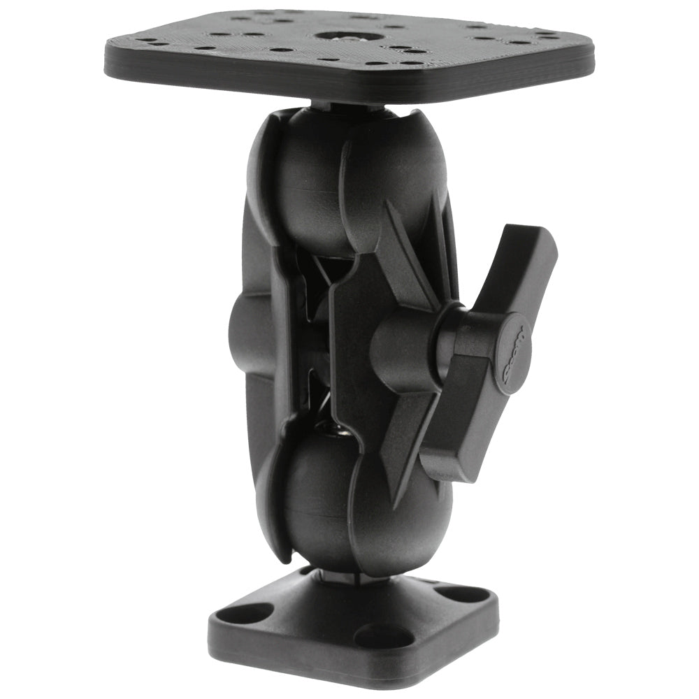 The Scotty Sonar Mount features a mount that accommodates 5-7" screens from leading electronics brands, constructed with engineering grade nylon and stainless steel. The easy grip t-knob allows for secure tightening and simple adjustments, while compatibility with all 1.5" Scotty ball mounting system accessories makes it versatile. With corrosion proof materials, this system is built to last in both fresh and saltwater environments. Dual ball-joints provide unlimited positioning options.